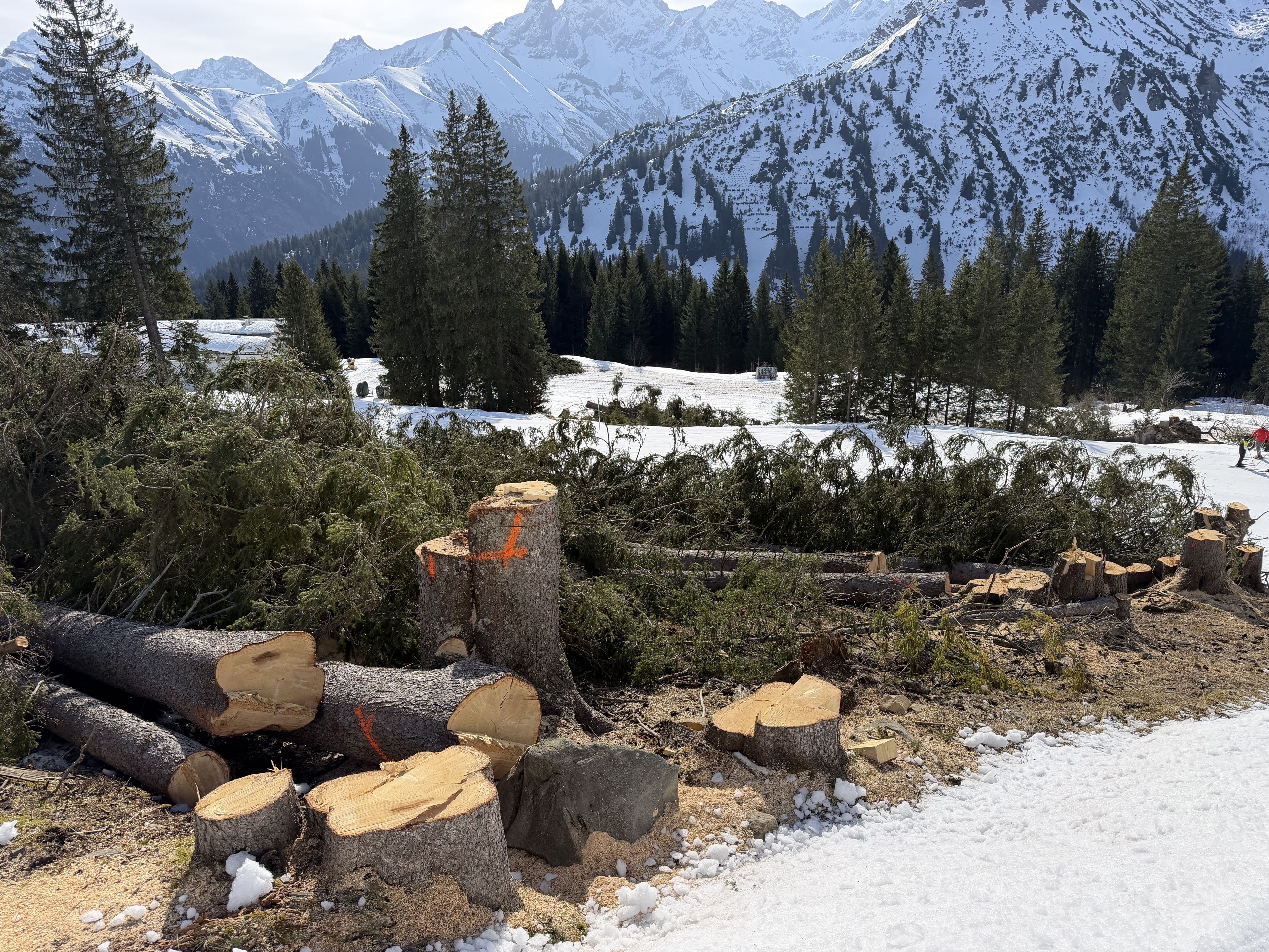 Hier sehen Sie schon die Rodungen von Schutzwald - auch im FFH-Gebiet für die Scheidtobelbahn, den Swisscord und die 90Gradkurve/Familienabfahrt. Bildrechte liegen bei der Kreisgruppe Kempten - Oberallgäu.