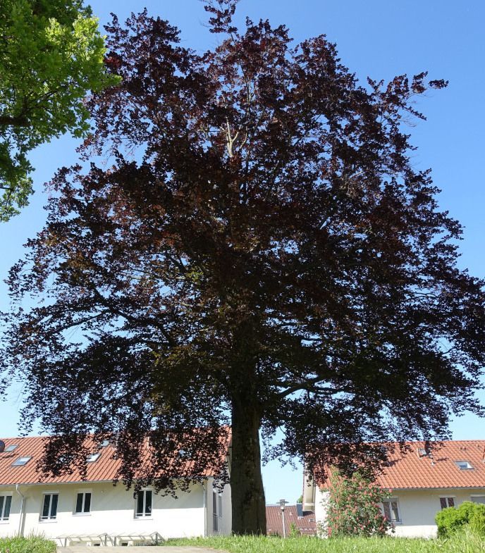 Eine farbige Variante der Rotbuche ist die Blutbuche, hier ist der in allen Buchenblättern enthaltene rote Farbstoff so hoch konzentriert, dass er das Blattgrün überdeckt.